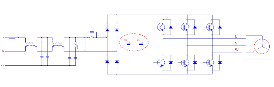 以變頻空調(diào)內(nèi)的三相逆變電路為例,鋁電解電容器在其中發(fā)揮了低頻濾波和儲能緩沖的重要作用。